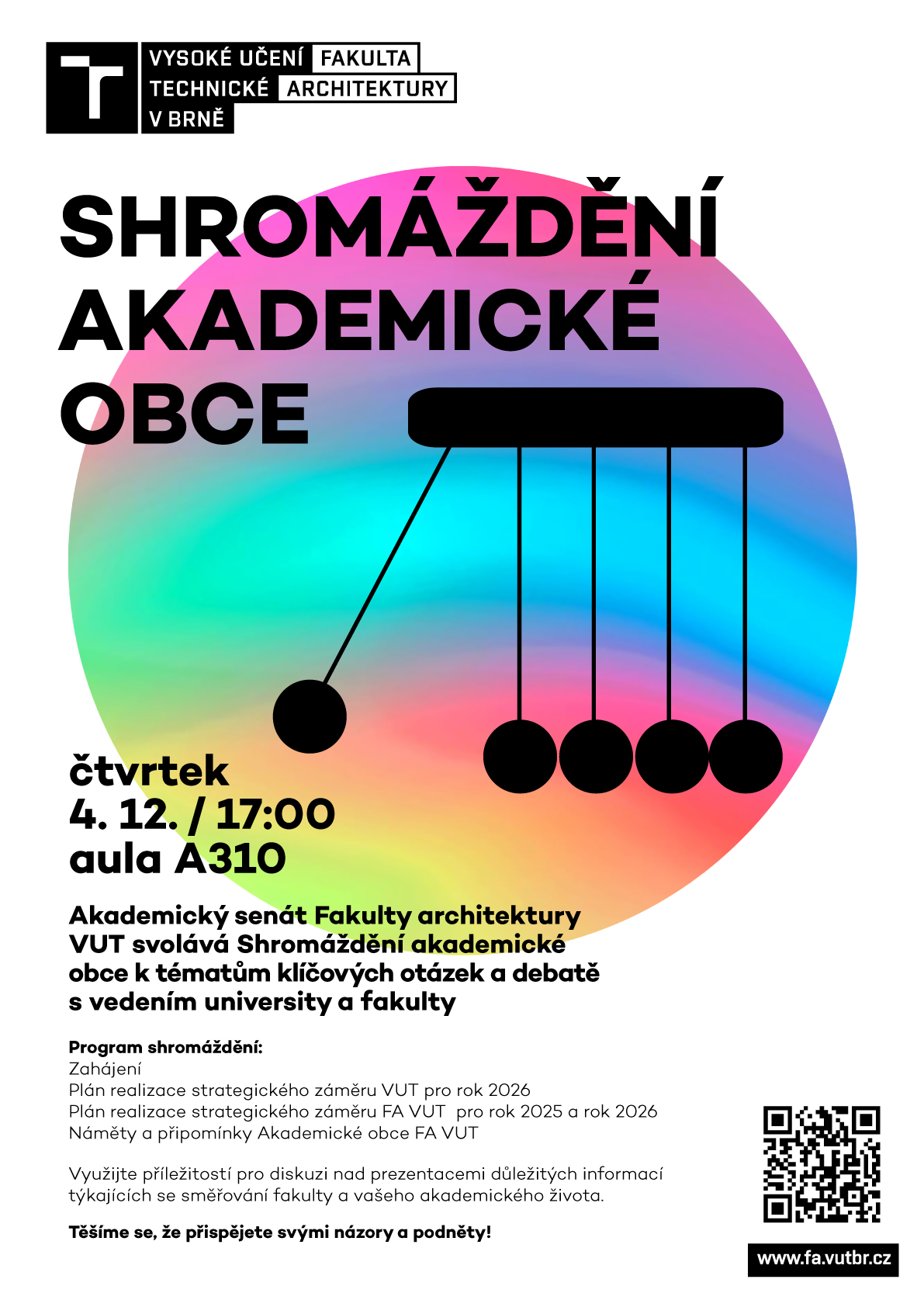 Srdečně vás zveme na Shromáždění akademické obce, které svolává Akademický senát Fakulty architektury VUT