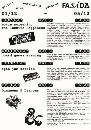 Lets play! Come to the gallery to play some board games and chill in the mini bar. There will be games for you, but don't hesitate to bring your own:)