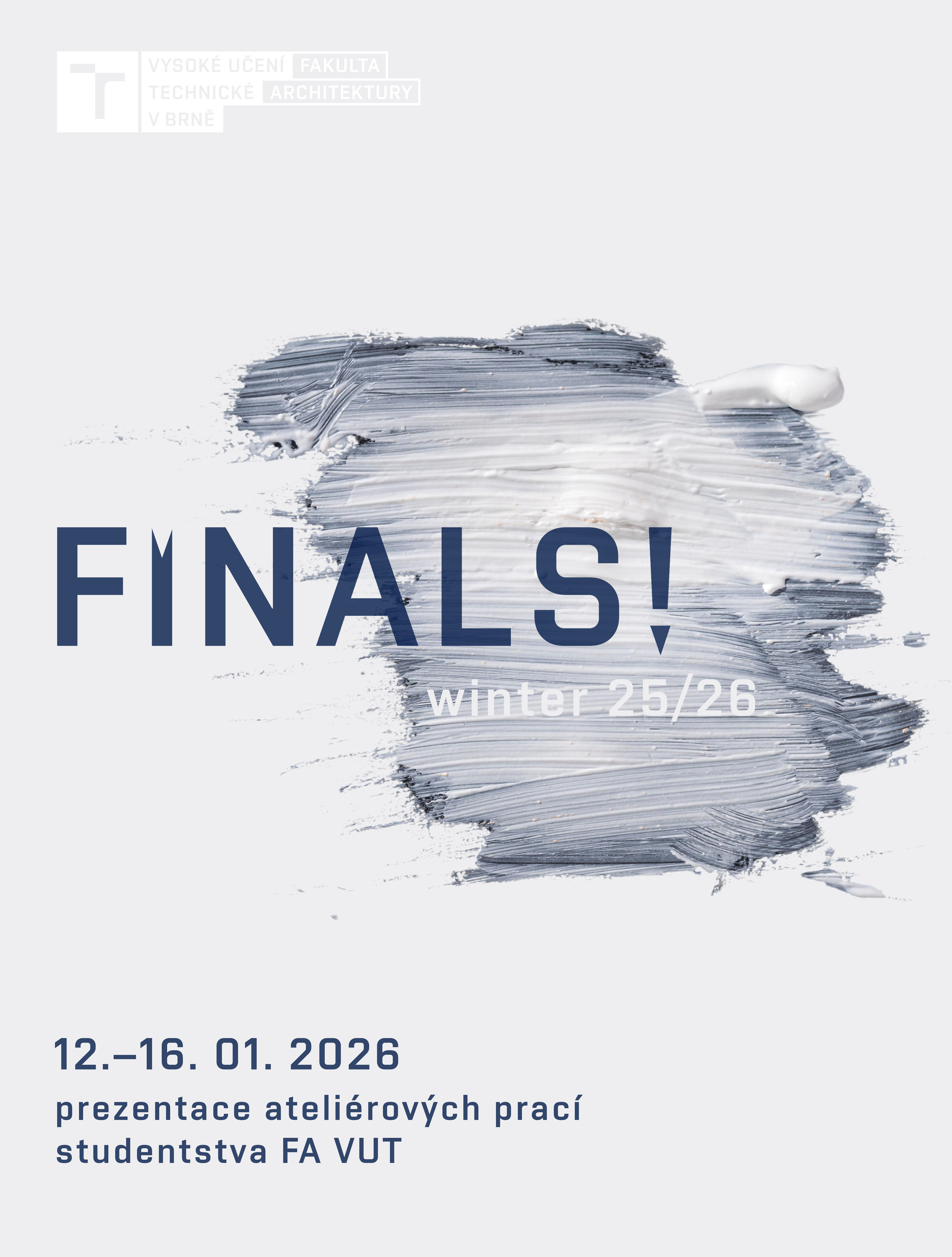 Konec zimního semestru uzavře festival FINALS!, během kterého se prezentují ateliérové práce studentstva FA VUT. Festival začíná v pondělí 12. ledna a potrvá do pátku 16. ledna.Součástí FINALS! bývá také Cena Bohuslava Fuchse, na vyhlášení si tentokrát budete muset počkat do čtvrtka 22. ledna.