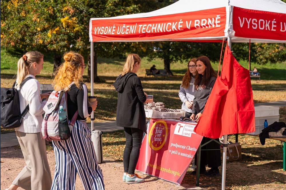 Chcete se zapojit? Stačí navštívit stánky, kde můžete přispět (ideálně částkou 50 Kč) na péči o nevyléčitelně nemocné do zapečetěných kasiček, platební kartou nebo prostřednictvím QR kódu. Za odměnu si odnesete sladký koláč z pece Kolejí a menz VUT.