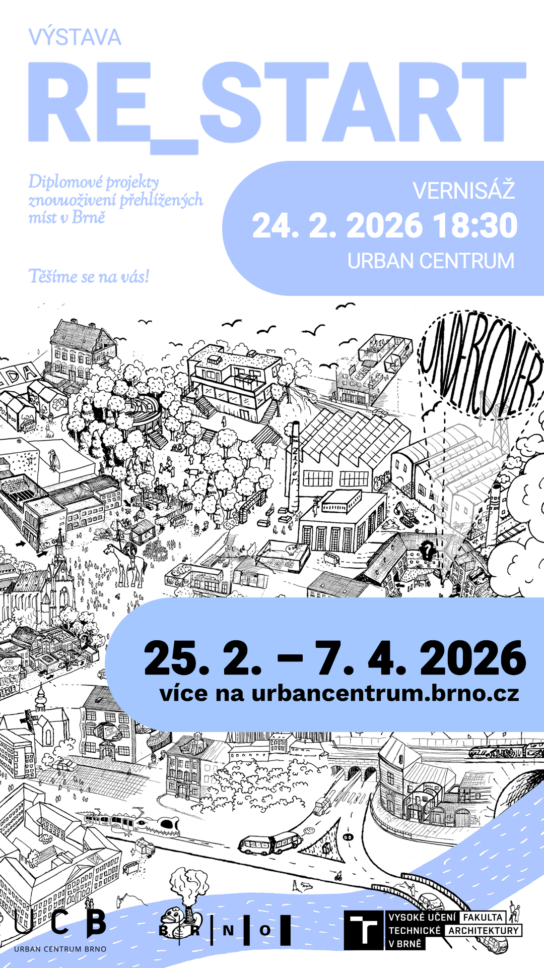 Zveme Vás na vernisáž výstavy Re_start, která představuje diplomové projekty studentů Fakulty architektury VUT zaměřené na znovuoživení opomíjených míst v Brně.